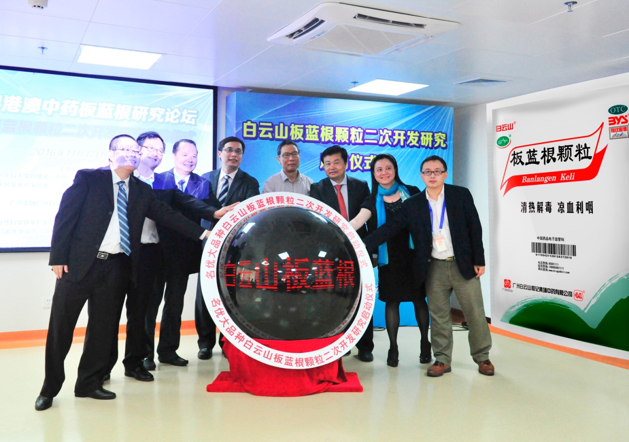 2016年“粤港澳中药板蓝根研究论坛暨白云山板蓝根二次开发研究启动仪式”上,澳门科技大学、香港大学等单位的知名专家、研究人员对白云山板蓝根抗病毒的基础和临床研究进行了阶段性总结。通过以上一系列的优势互补,双方携手推动了中医药现代化和国际化进程。
