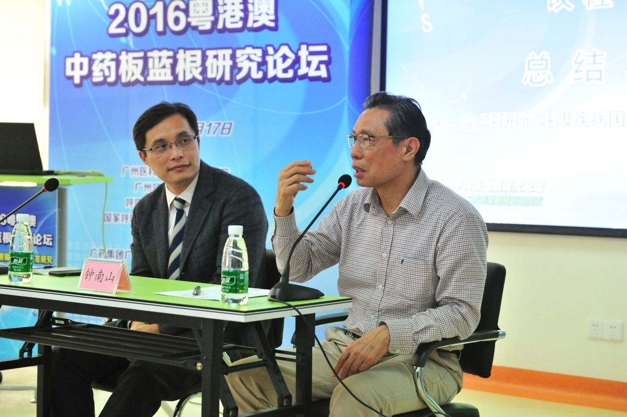 钟南山院士与黄璐琦院士现场讨论与解答白云山板蓝根研究情况